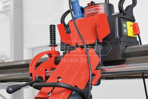 Обладая автоподачей, кромкорез АВМ-28 движется по направляющим, которые крепятся к листу быстросъемными струбцинами (направляющие и струбцины входят в комплект поставки).